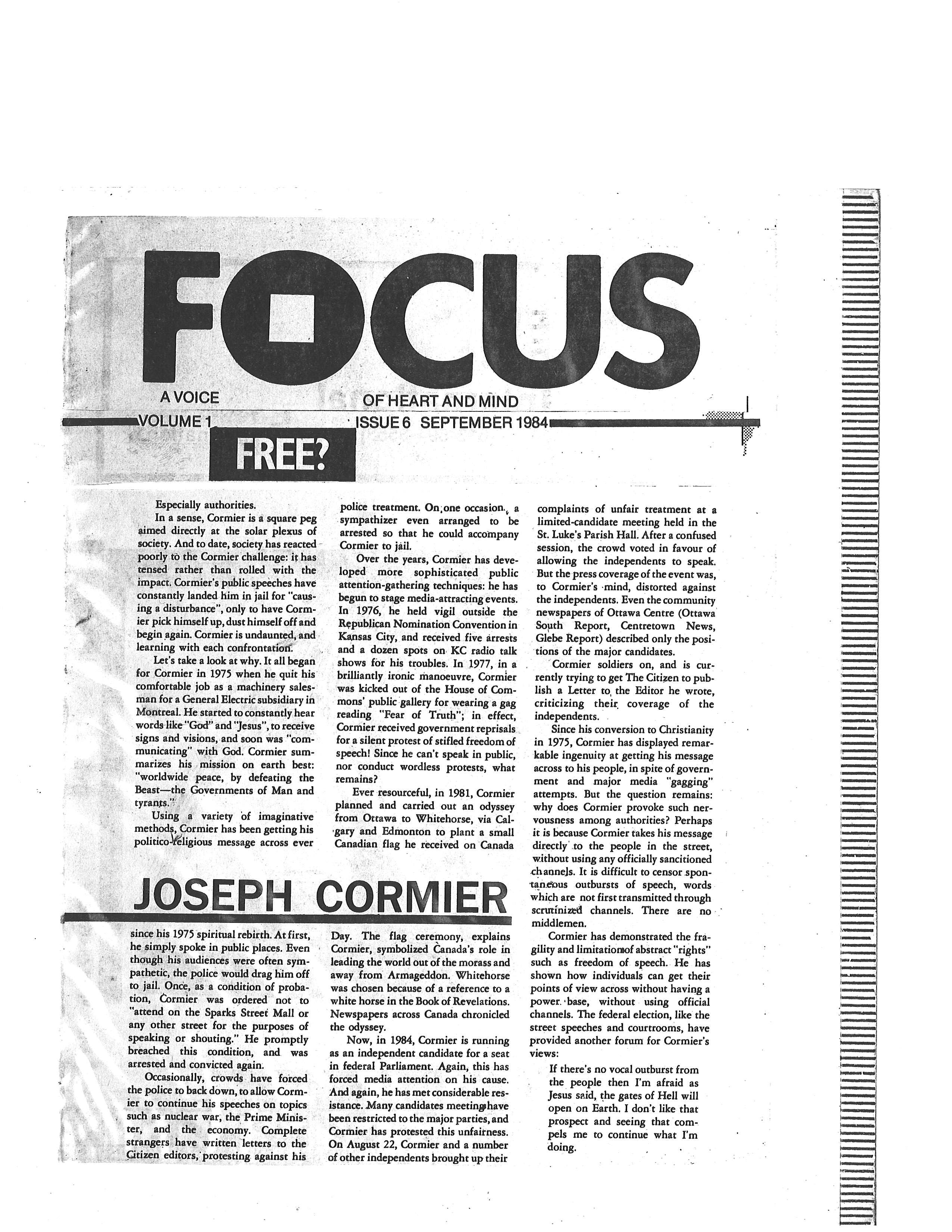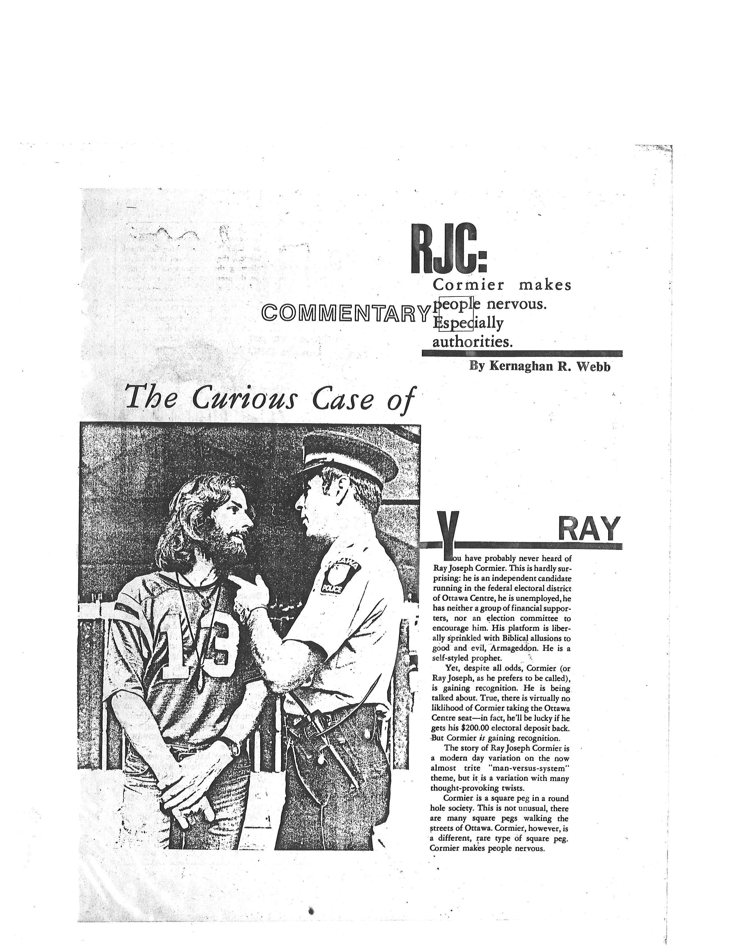 Picture from The Ottawa Citizen, Saturday, September 1, 1984 ‘Fringe candidates add color, little challenge in campaign’