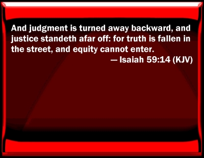 And Judgment is turned away backward, and Justice stands afar off: for TRUTH is fallen in the street, and EQUITY cannot enter.